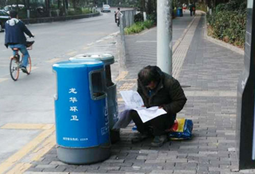 2月14日上午8時(shí)39分,網(wǎng)友高小姐報(bào)料稱,早上8時(shí)05分在深圳龍華大浪桃源賓館公交站旁,一位拾荒男子蹲在垃圾桶旁非常認(rèn)真的在看一份小學(xué)數(shù)學(xué)卷子,讓準(zhǔn)備去上班的高小姐肅然起敬。