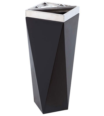 • 產品材質:多角座地煙灰桶采用優質冷軋鋼經除油-除銹-表調-磷化處理后,表面采用汽車靜電粉末噴漆工藝,噴塑粉主要有丙烯酸粉末、聚酯粉末等。雙層防銹,漆面色澤耐久;