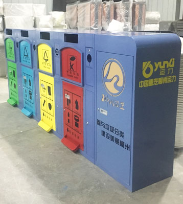 使用客戶:柳州運(yùn)力四分類金屬垃圾桶 發(fā)布時間:2020-11-19